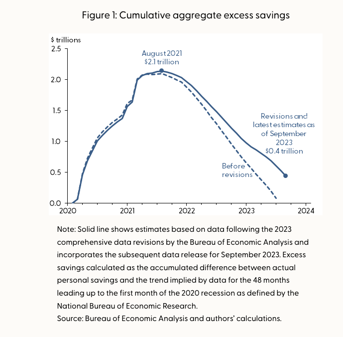 [6] “Data Revisions and Pandemic-Era Excess Savings”, Federal Reserve Bank of San Francisco, November 8, 2023, Hamza Abdelrahman and Luiz Edgard Oliveira. https://www.frbsf.org/research-and-insights/blog/sf-fed-blog/2023/11/08/data-revisions-and-pandemic-era-excess-savings/#:~:text=Our%20updated%20estimates%20suggest%20that,Pandemic%2DEra%20Excess%20Savings.%E2%80%9D